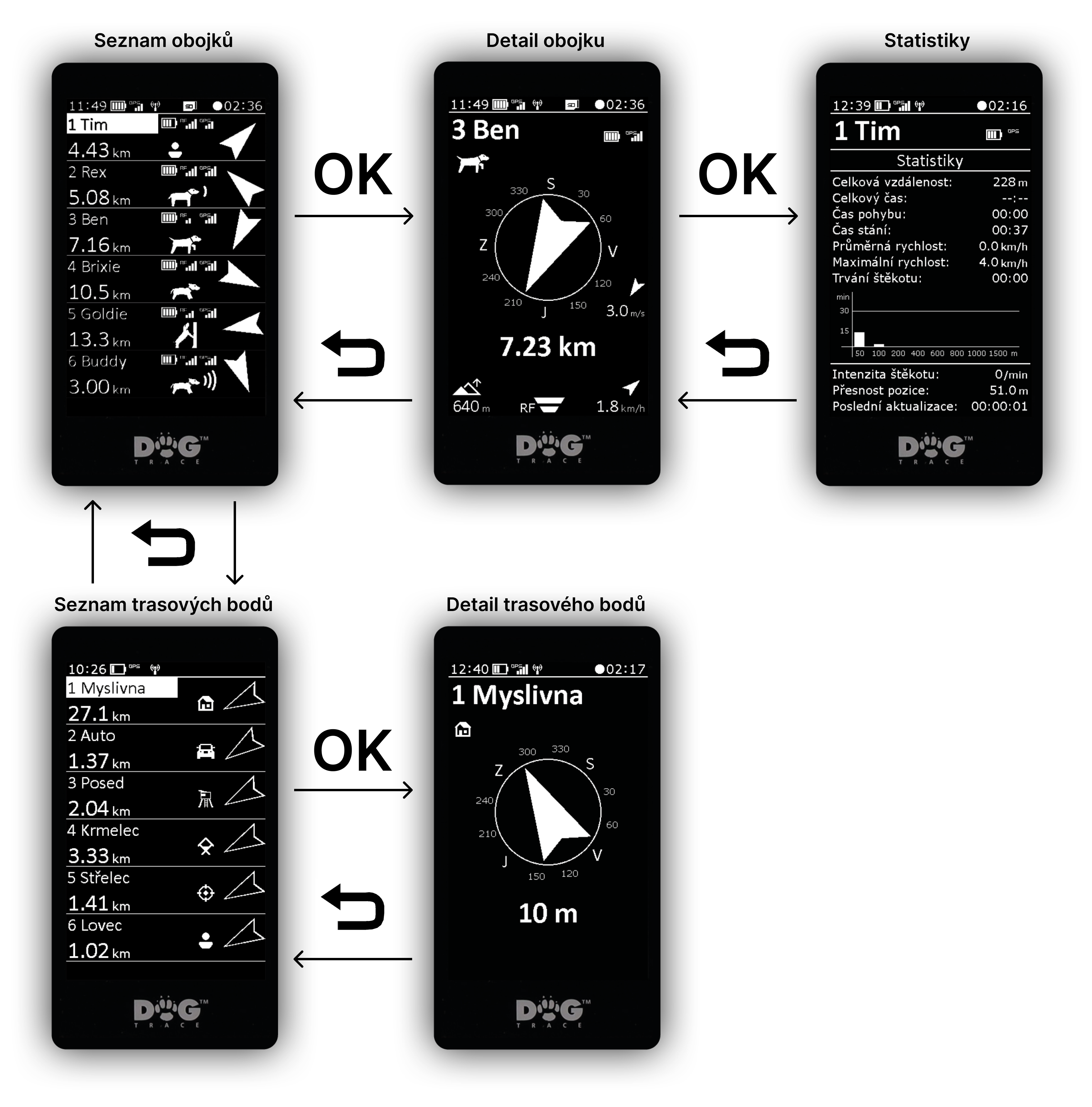 - Detail obojku – podrobné informace o vybraném obojku